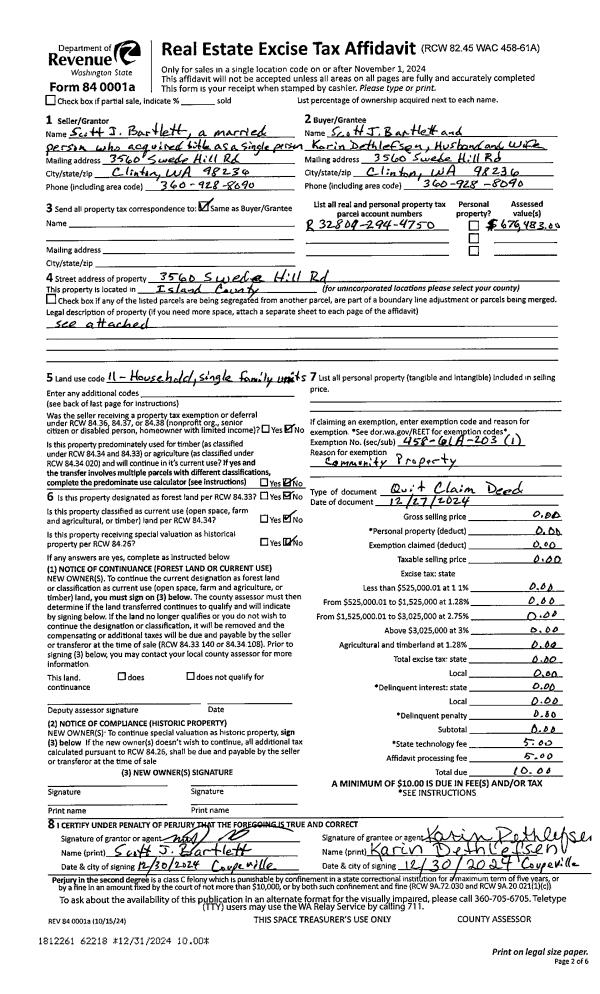 | 1 | 04/23/2024 | QCD | Quit Claim Deed | SANDVIK, STANLEY E | SANDVIK, MARILYN J | | | $0.00 | 59807 | 4571847 |