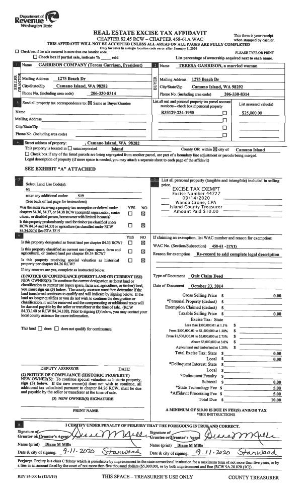 | Mailing Address: | LESLIE KOZIOL 6529 SOUTH ADMIRALTY WAY FREELAND, WA 98249 | % Ownership: | 100.0000000000% |