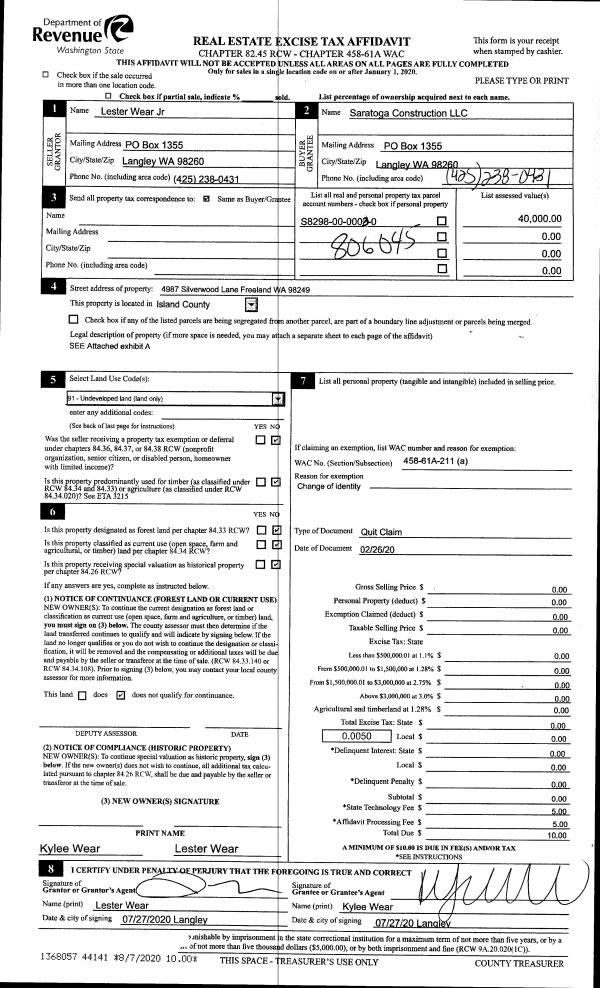 | Mailing Address: | 3453 CORAL ST GREENBANK, WA 98253 | % Ownership: | 100.0000000000% |