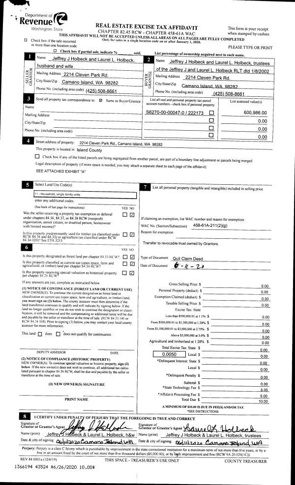 | 3 | 07/01/1991 | QCD | Quit Claim Deed | NASH, W L | NASH, HELEN E | | | $0.00 | 12663 | 91011318 |
