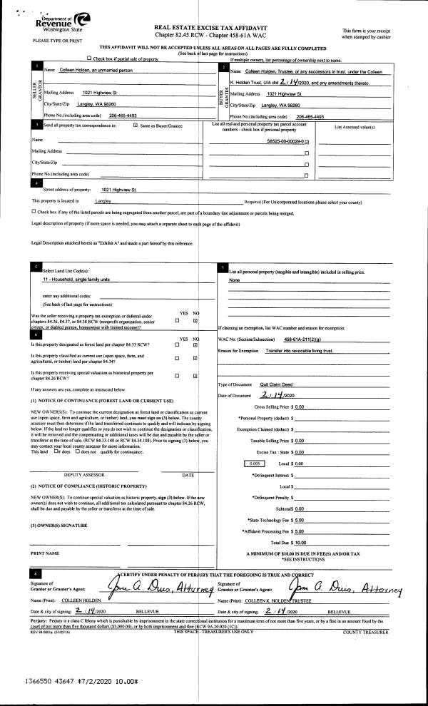 | Mailing Address: | KAY LYNN E MAYHEW 3451 HOLMES ST GREENBANK, WA 98253 | % Ownership: | 100.0000000000% |