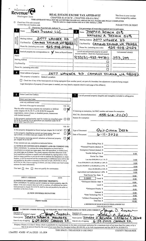 | Mailing Address: | SANDY ESCHEN 3419 CAMANO VISTA ST GREENBANK, WA 98253 | % Ownership: | 100.0000000000% |