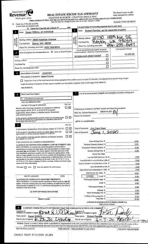 | Mailing Address: | 983 AQUA VIEW LN GREENBANK, WA 98253 | % Ownership: | 100.0000000000% |
