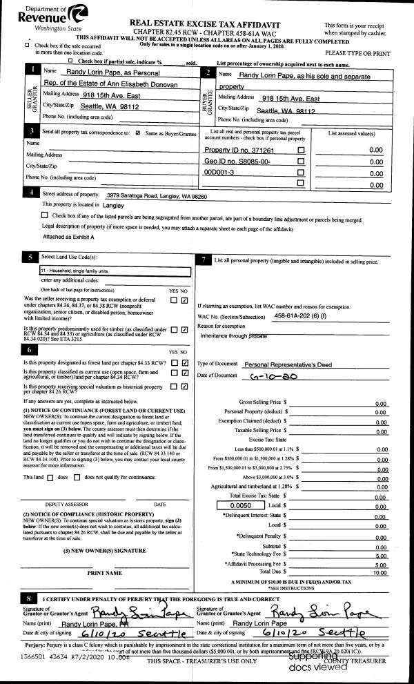 | 2 | 11/01/1993 | TTAXD | Treasurer's Tax Deed | CARD, PERRY C | GUERERO, GREG/LOIS | | | $0.00 | 65668 | 93023917 |