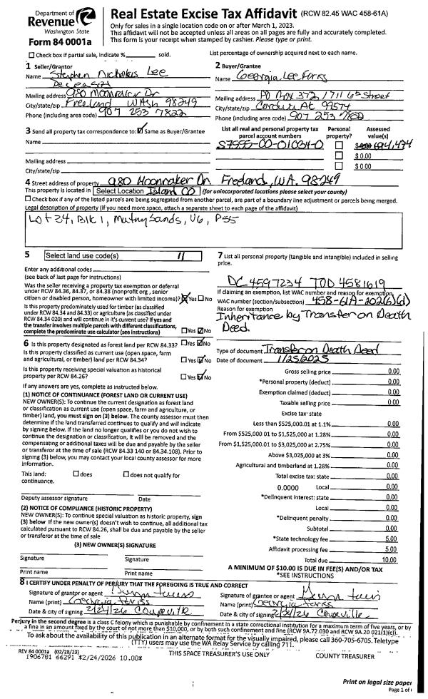 | 1 | 04/04/2012 | TOD | Transfer On Death Deed | TERRELL, DONALD G | TERRELL, DARLENE J | | | | 82316 | |