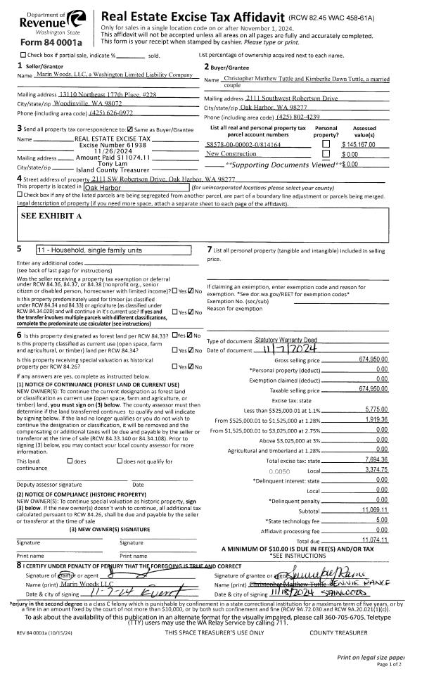 | Mailing Address: | 390 E WHIDBEY AVE OAK HARBOR, WA 98277 | % Ownership: | 100.0000000000% |