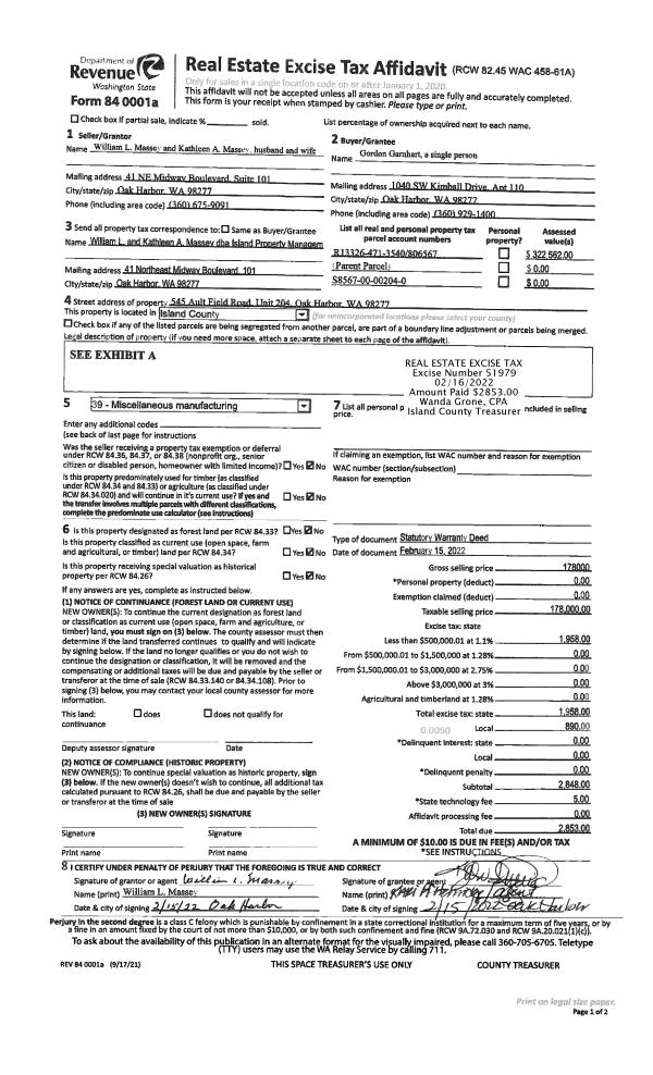 | Mailing Address: | PATRICIA A BURTNER FREEMAN 1264 DINES PT RD GREENBANK, WA 98253 | % Ownership: | 100.0000000000% |