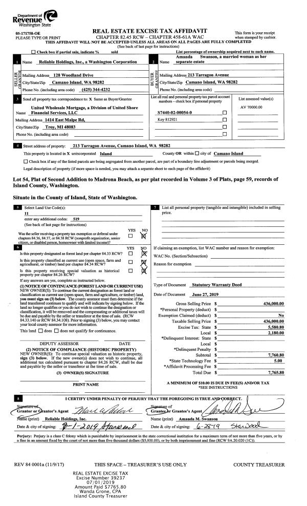 | 3 | 07/25/2018 | WD | Warranty Deed | PARISI, JERRY V | COWAN JTWROS, DAVE W | | | $625,000.00 | 35456 | 4449920 |