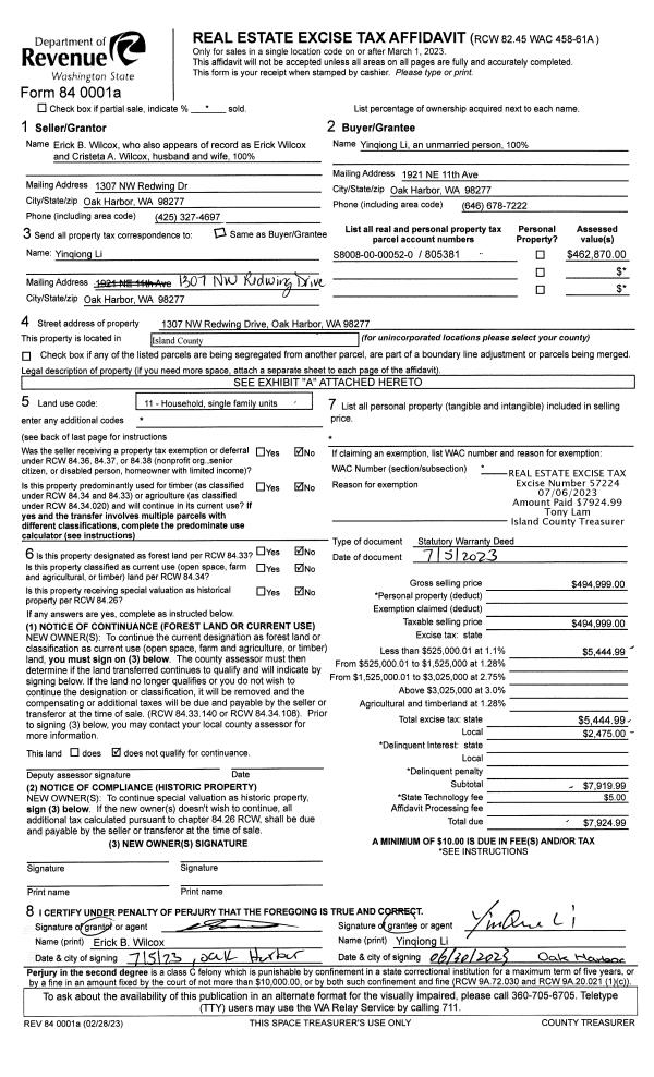 | Mailing Address: | 705 VESPER WAY CAMANO ISLAND, WA 98282 | % Ownership: | 100.0000000000% |