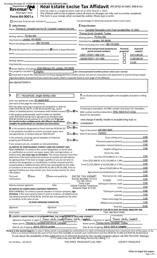 | Mailing Address: | ELIZABETH M CHRISTIE & THOMAS J CHRISTIE 2120 N STEELE ST TACOMA, WA 98406 | % Ownership: | 100.0000000000% |