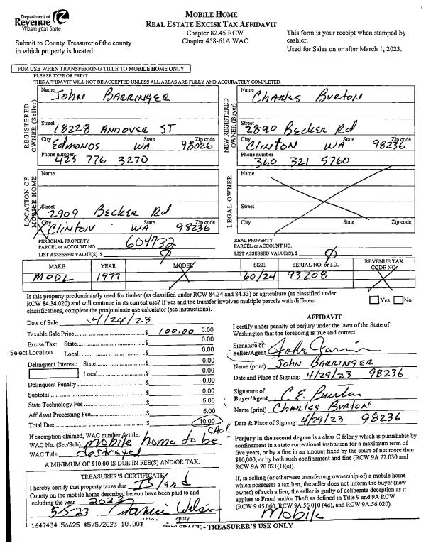 | Mailing Address: | 386 ARROWHEAD BEACH RD CAMANO ISLAND, WA 98282 | % Ownership: | 100.0000000000% |