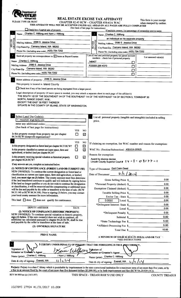 | Mailing Address: | 1104 WATERLOO RD OAK HARBOR, WA 98277 | % Ownership: | 100.0000000000% |