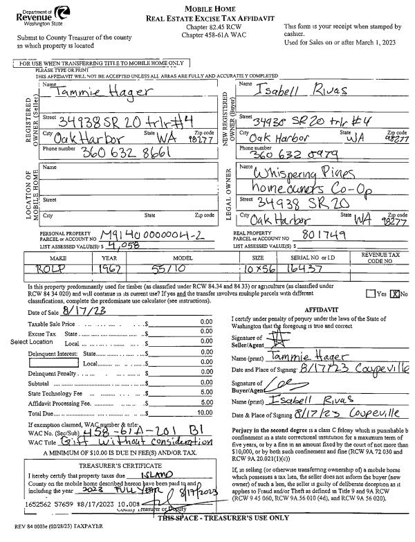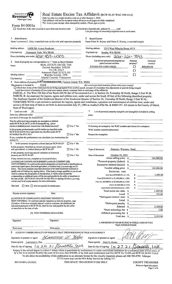 | Mailing Address: | TAUREAN JAE OTA 390 TILLICUM WAY CAMANO ISLAND, WA 98282 | % Ownership: | 100.0000000000% |