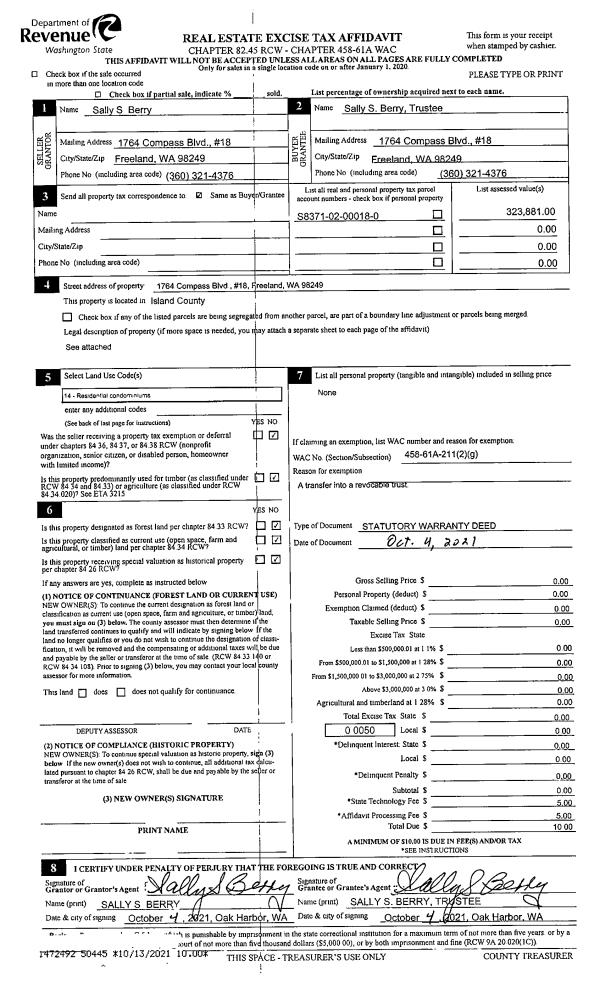 | Mailing Address: | TINA RANDALL TTEE 24806 NE 152ND AVE BATTLE GROUND, WA 98604 | % Ownership: | 100.0000000000% |