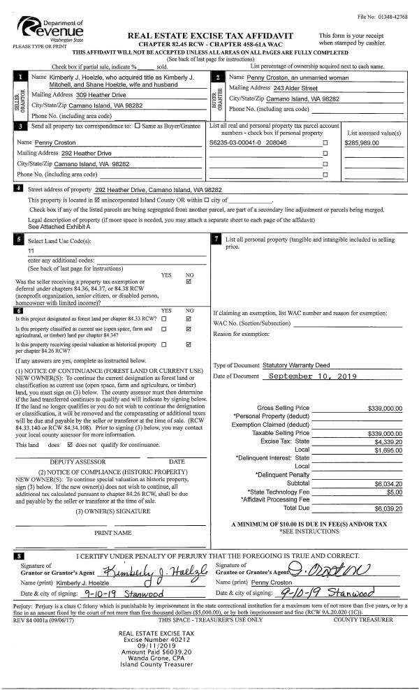 | Mailing Address: | LINDA LANE MCFARLANE KATIE M LANE 2927 SARATOGA RD LANGLEY, WA 98260 | % Ownership: | 100.0000000000% |