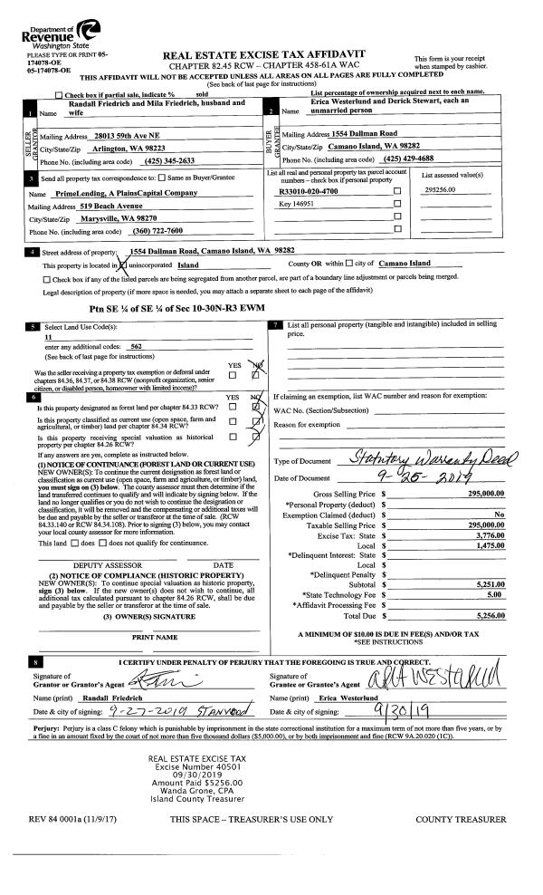 | Tax Area: | 719 - APPRAISER-S Whid Schl Dist, outside Langley, vacant & 50 acres or less | Land Use Code | 99 |