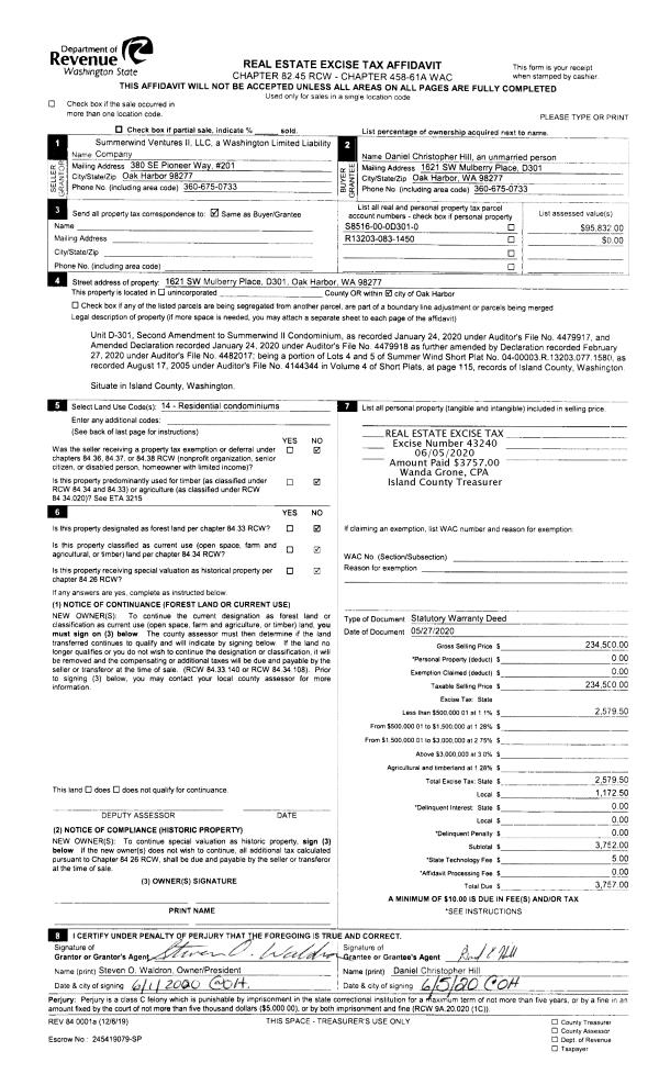 | Mailing Address: | 1319 SEALAWN BLVD FREELAND, WA 98249 | % Ownership: | 100.0000000000% |