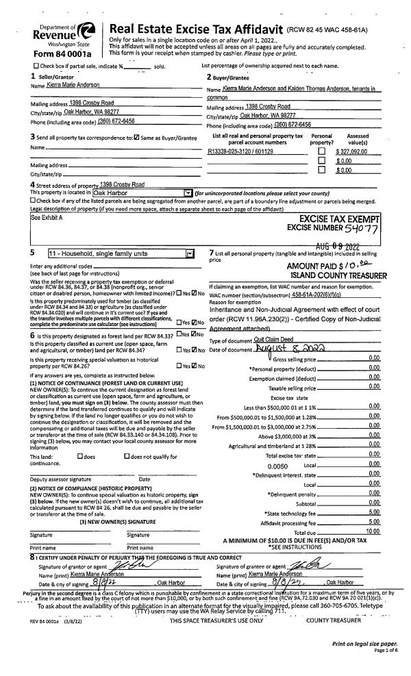 | Mailing Address: | 1323 SEALAWN BLVD FREELAND, WA 98249 | % Ownership: | 100.0000000000% |