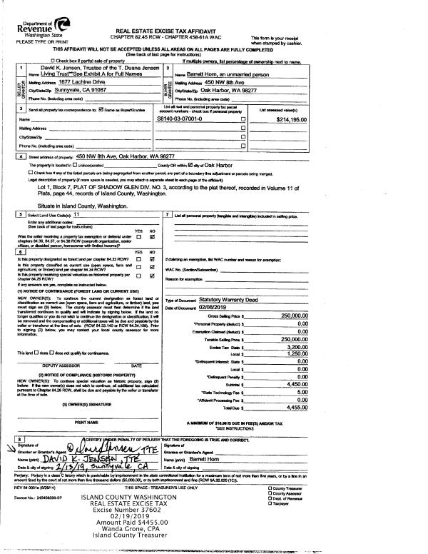 | 6 | 09/09/2003 | WD | Warranty Deed | JOHNSON, STIG | FAUTH, PHILLIP J | | | $19,900.00 | 34128 | 4075176 |