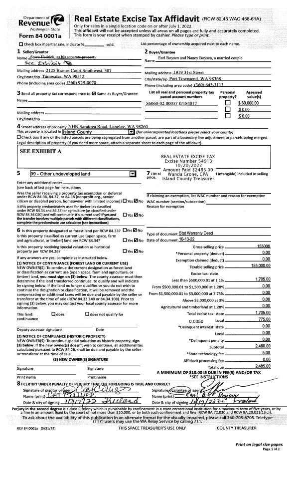 | Mailing Address: | 1330 WINSTON DR FREELAN, WA 98249 | % Ownership: | 100.0000000000% |
