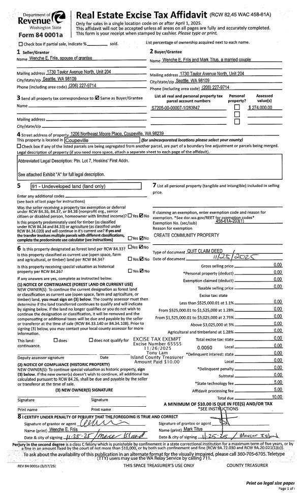 | Mailing Address: | PO BOX 456 FREELAND, WA 98249 | % Ownership: | 100.0000000000% |