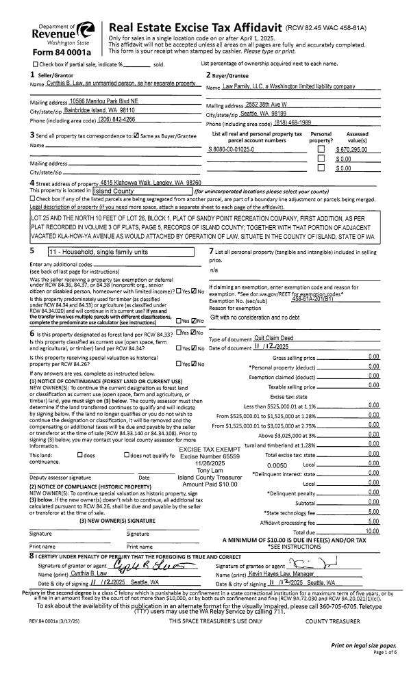 | Mailing Address: | 9635 47TH AVE SW SEATTLE, WA 98136 | % Ownership: | 100.0000000000% |