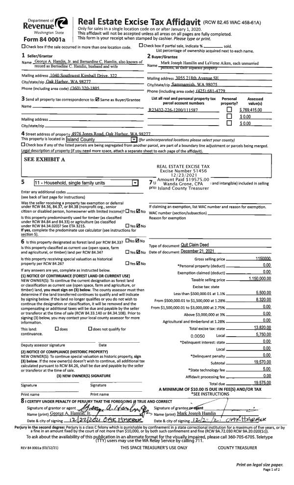 | Mailing Address: | 6591 HUMPHREY RD CLINTON, WA 98236 | % Ownership: | 100.0000000000% |