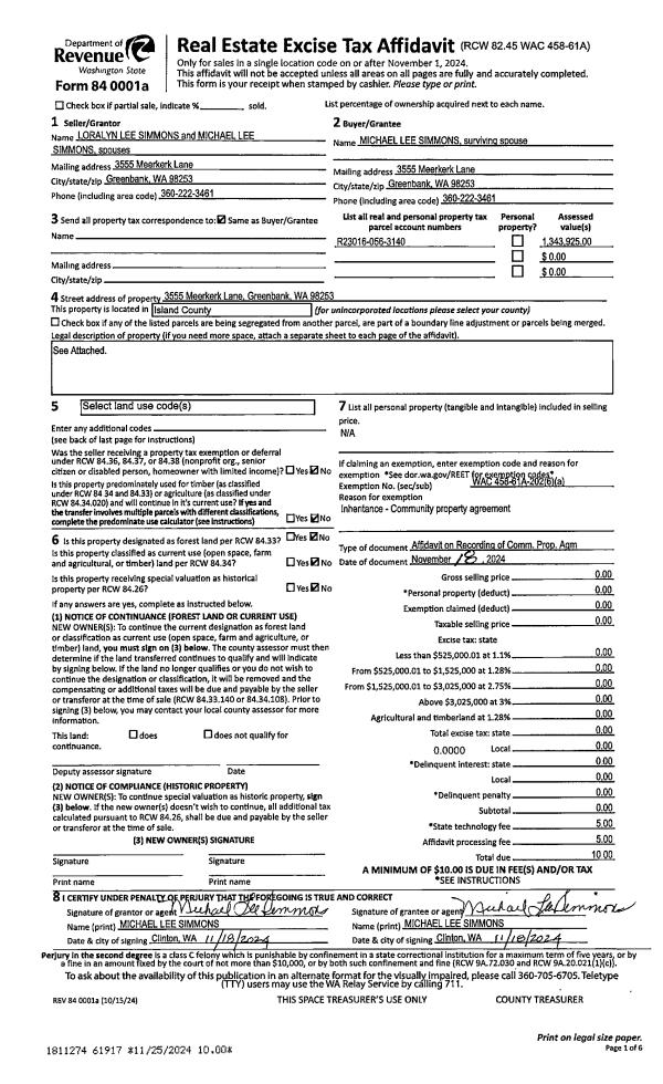 | Mailing Address: | FRANCES L JONES 2670 SW SCENIC HEIGHTS OAK HARBOR, WA 98277 | % Ownership: | 100.0000000000% |