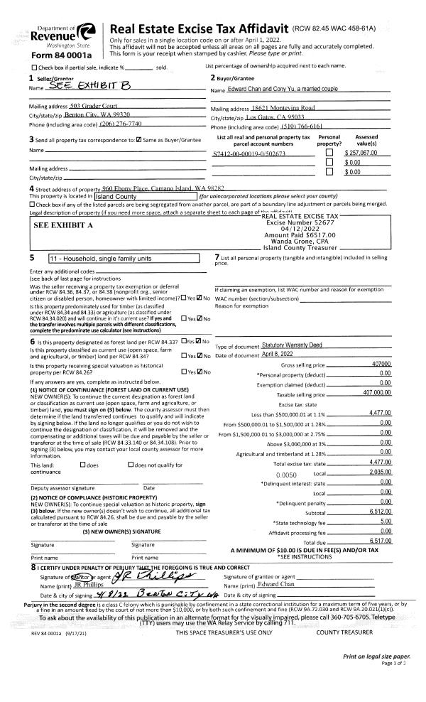 | 11 | 07/01/1982 | REC | Real Estate Contract | BERG, PAUL A | FAIRCHILD, JOHN D | | | $38,000.00 | 21690 | 398445 |