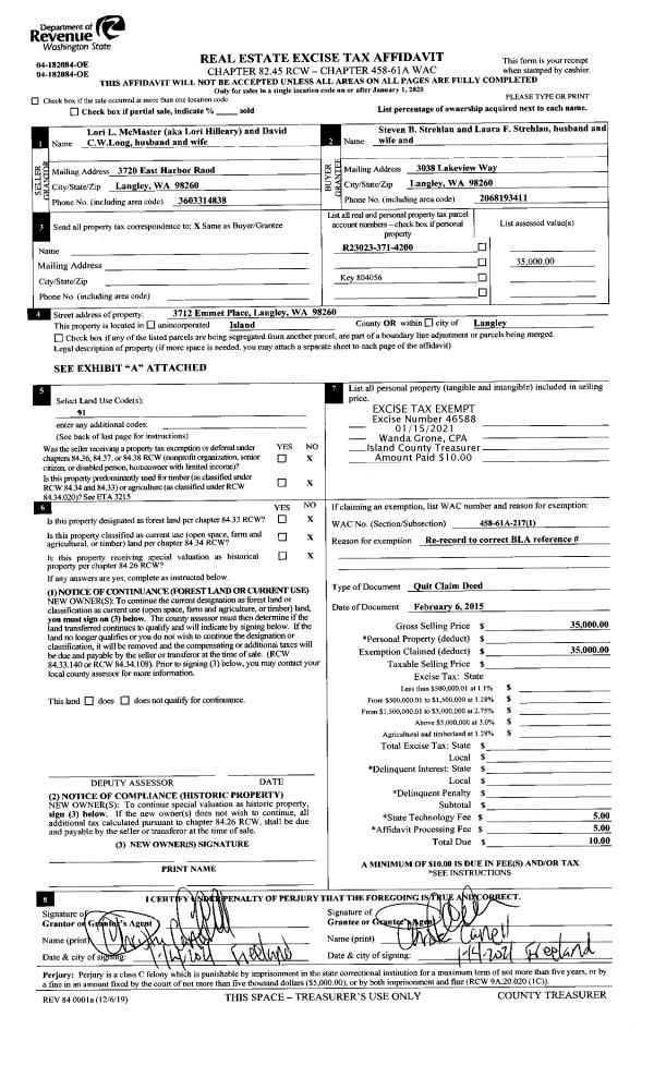 | 5 | 12/01/1984 | QCD | Quit Claim Deed | WOLLE, CAROL A | DYKSTRA, JOHN T | | | $0.00 | 50049 | 85000211 |