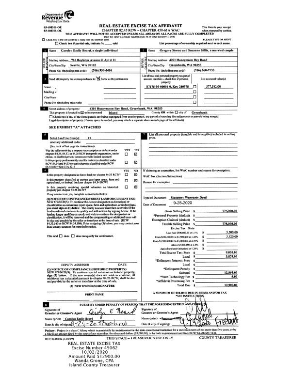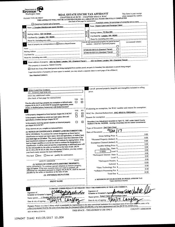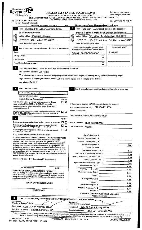 | Mailing Address: | 270 SE BARRINGTON , UNIT C301 OAK HARBOR, WA 98277 | % Ownership: | 100.0000000000% |