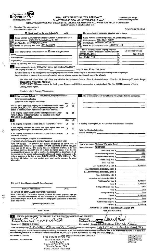 | Mailing Address: | 270 SE BARRINGTON DR #B106 OAK HARBOR, WA 98277 | % Ownership: | 100.0000000000% |