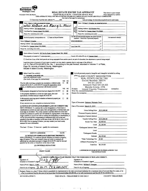 | Mailing Address: | 270 SOUTHEAST BARRINGTON DR OAK HARBOR, WA 98277 | % Ownership: | 100.0000000000% |