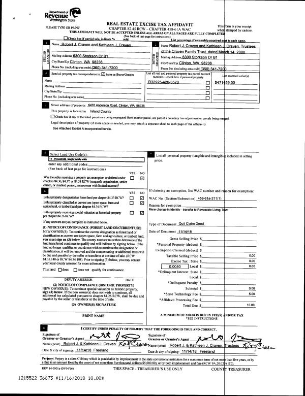 | Mailing Address: | 750 SE 8TH AVE, APT 102 OAK HARBOR, WA 98277 | % Ownership: | 100.0000000000% |