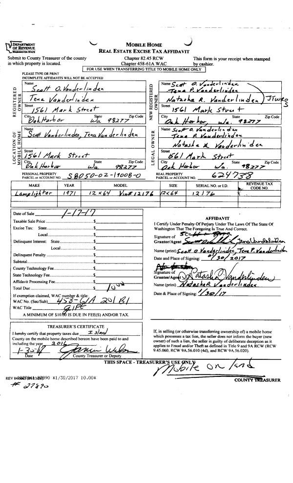 | Mailing Address: | 270 SE BARRINGTON DR A102 OAK HARBOR, WA 98277 | % Ownership: | 100.0000000000% |