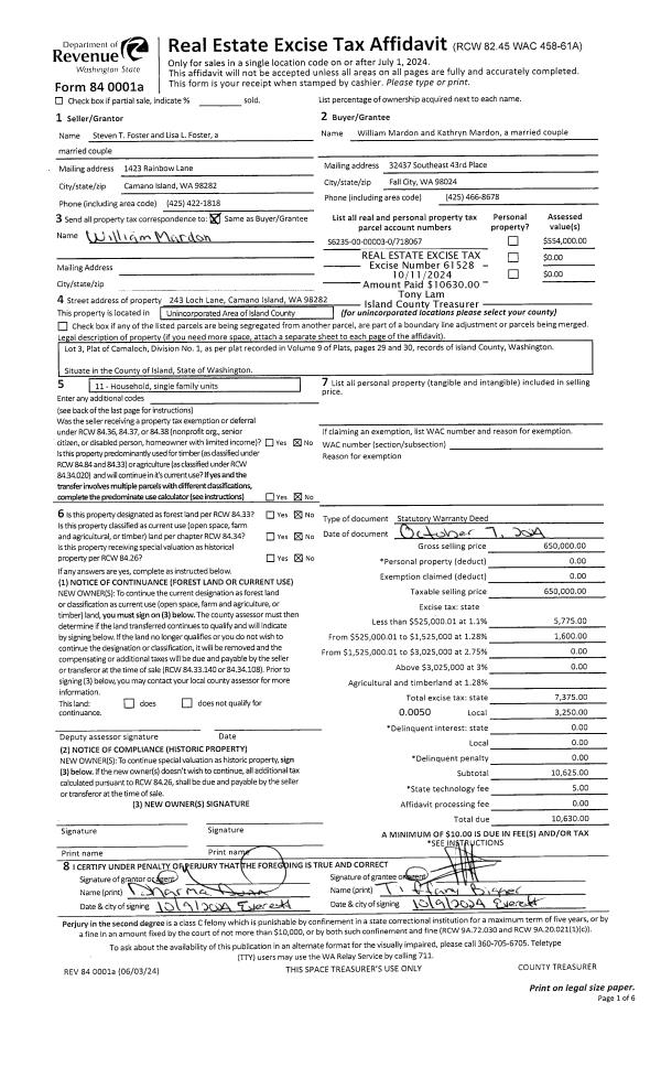 | 5 | 08/18/2008 | EZ | Easement | ISLAND COUNTY TAX TITLE, | ISLAND COUNTY, | | | $3,027.00 | 83013 | 4240427 |