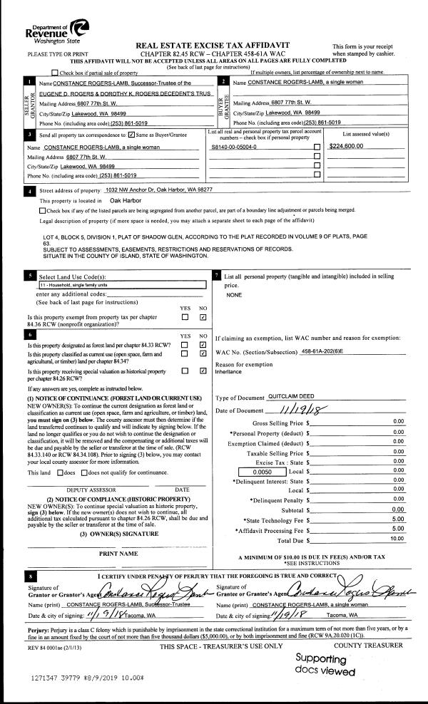 | 6 | 10/01/1985 | QCD | Quit Claim Deed | HANKINS, MARGUERITE R | NICHOLSON, SANDRA L | | | $0.00 | 52861 | 0 |