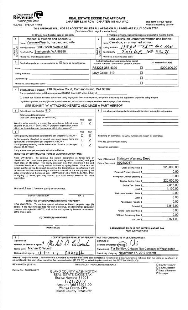 | Mailing Address: | 954 POPPY PL OAK HARBOR, WA 98277 | % Ownership: | 100.0000000000% |