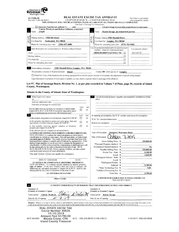 | Tax Area: | 719 - APPRAISER-S Whid Schl Dist, outside Langley, vacant & 50 acres or less | Land Use Code | 99 |