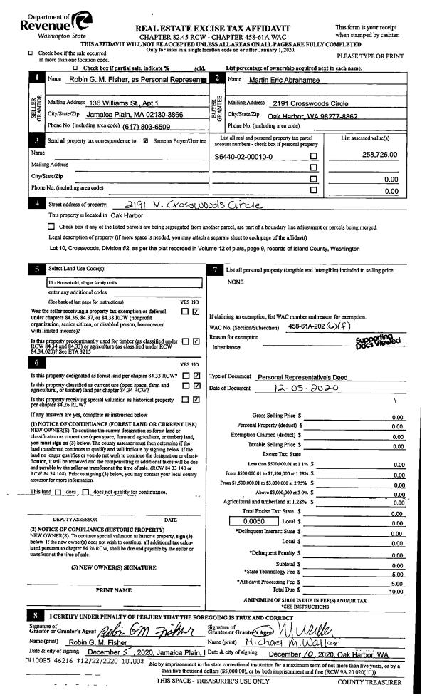| Mailing Address: | 4079 BEACH RD FREELAND, WA 98249 | % Ownership: | 100.0000000000% |