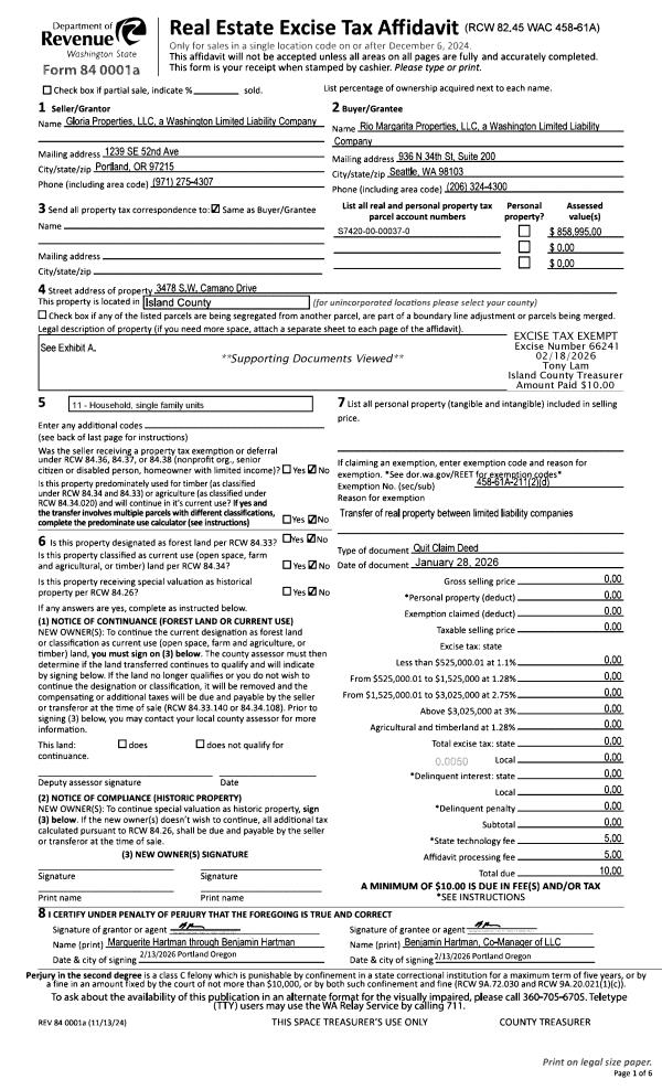 | 1 | 09/25/2012 | WD | Warranty Deed | BUZARD 35% INTEREST, NAOMI J | FREDERICKSON, GORDON S | | | $585,000.00 | 8960 | 4323818 |