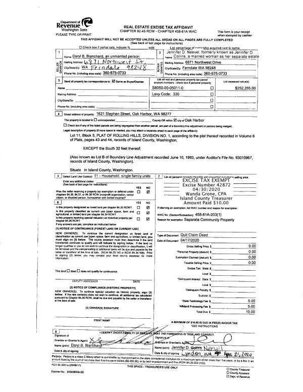 | 2 | 05/09/2001 | ESTSEPPROP | Establish Separate Property | MCGINLEY, SUSAN L | MCGINLEY, SUSAN L | | | $0.00 | 11665 | 20032327 |