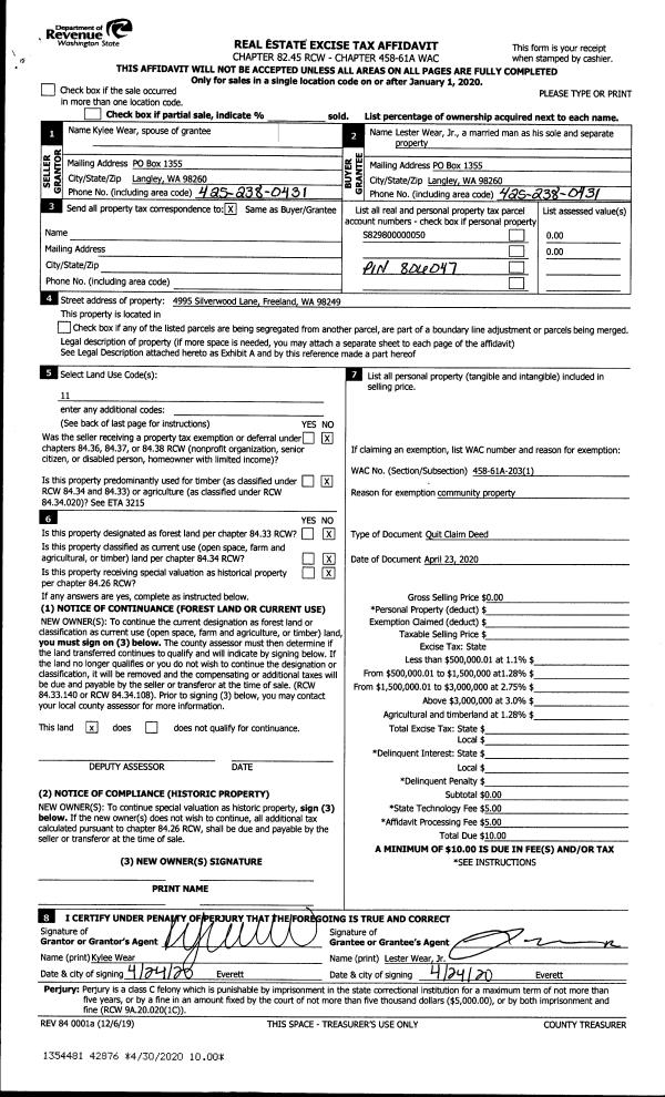 | Tax Area: | 719 - APPRAISER-S Whid Schl Dist, outside Langley, vacant & 50 acres or less | Land Use Code | 99 |