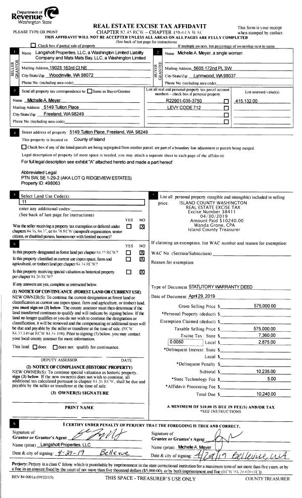 | Tax Area: | 710 - APPRAISER-S Whid Schl Dist, outside Langley, improved & 1 acre or less | Land Use Code | 11 |