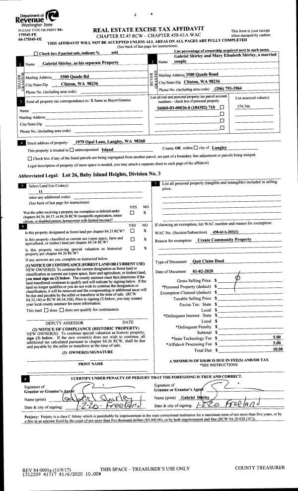 | Tax Area: | 719 - APPRAISER-S Whid Schl Dist, outside Langley, vacant & 50 acres or less | Land Use Code | 99 |