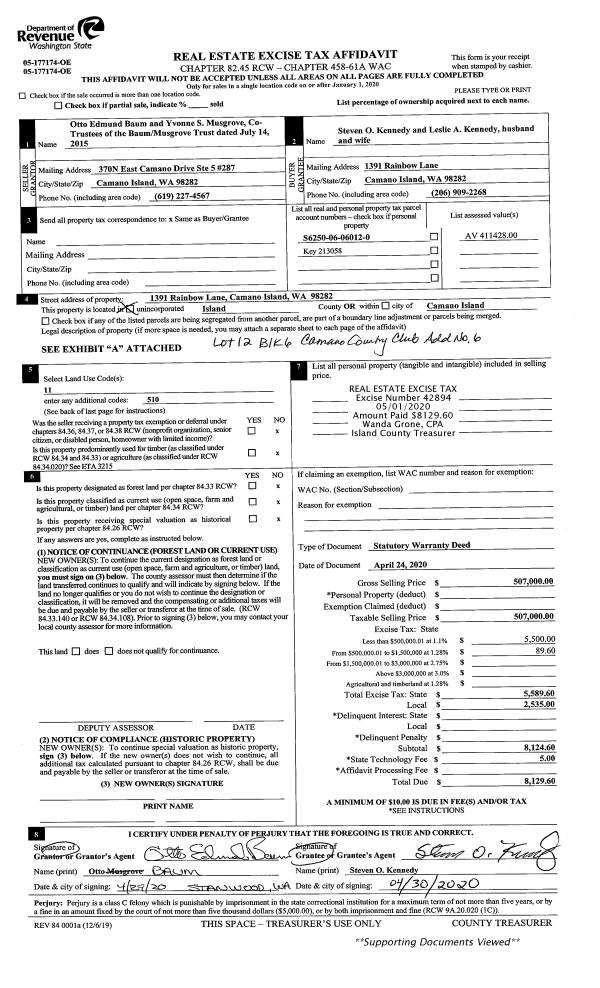 | 5 | 07/01/1976 | EXECUTORD | Executor Deed | SIEVERT, CLARENCE C | LANGNER, WERNER W | | | $13,000.00 | 62285 | 0 |