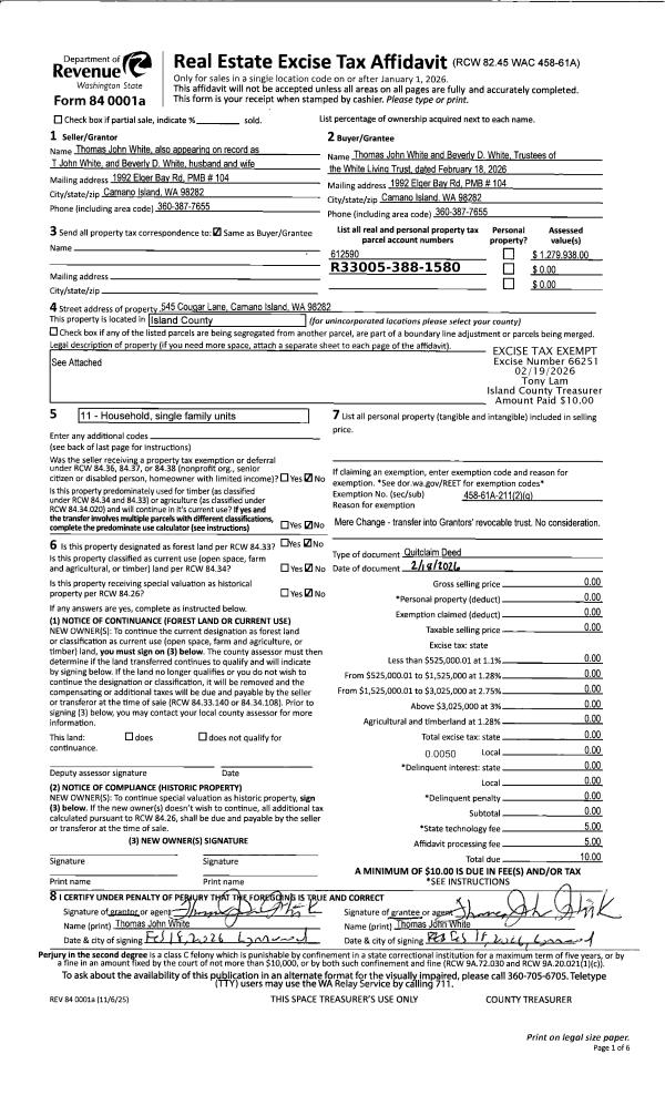 | Mailing Address: | 4160 BEACH DR FREELAND, WA 98249-9434 | % Ownership: | 100.0000000000% |