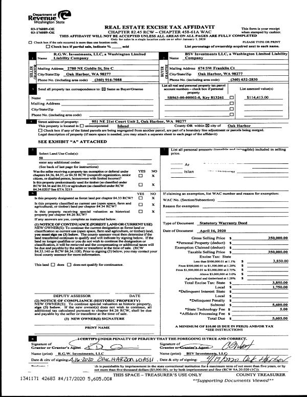 | SWHIDPRBD | P & R S Whidbey BOND | 0.0152817568 | $80,000 | $80,000 | $1.22 | | |