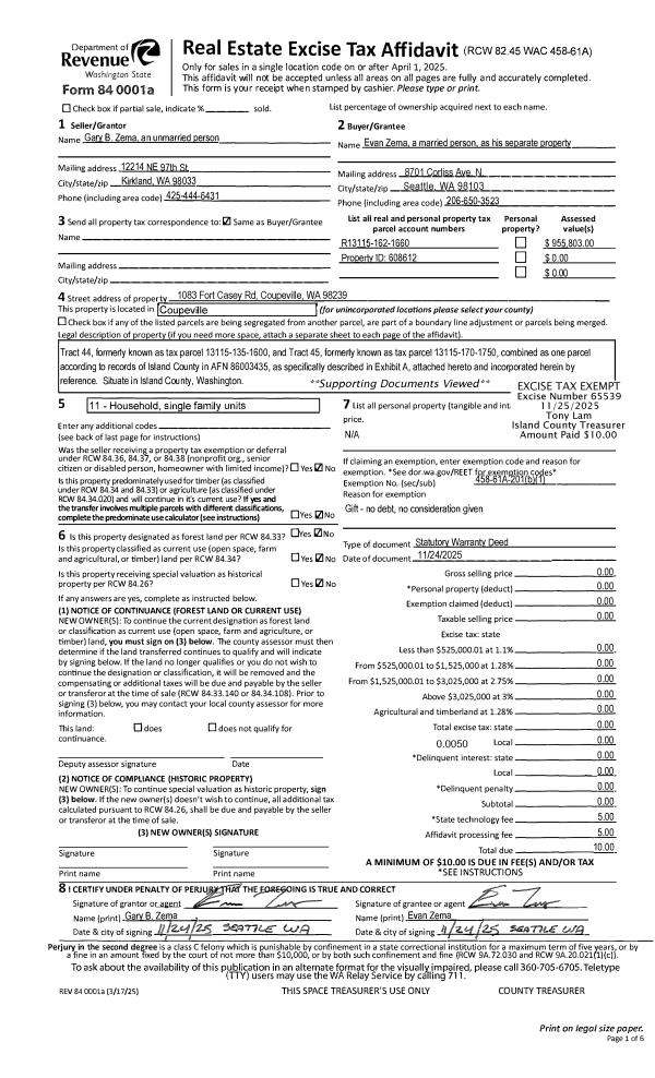 | Tax Area: | 719 - APPRAISER-S Whid Schl Dist, outside Langley, vacant & 50 acres or less | Land Use Code | 99 |