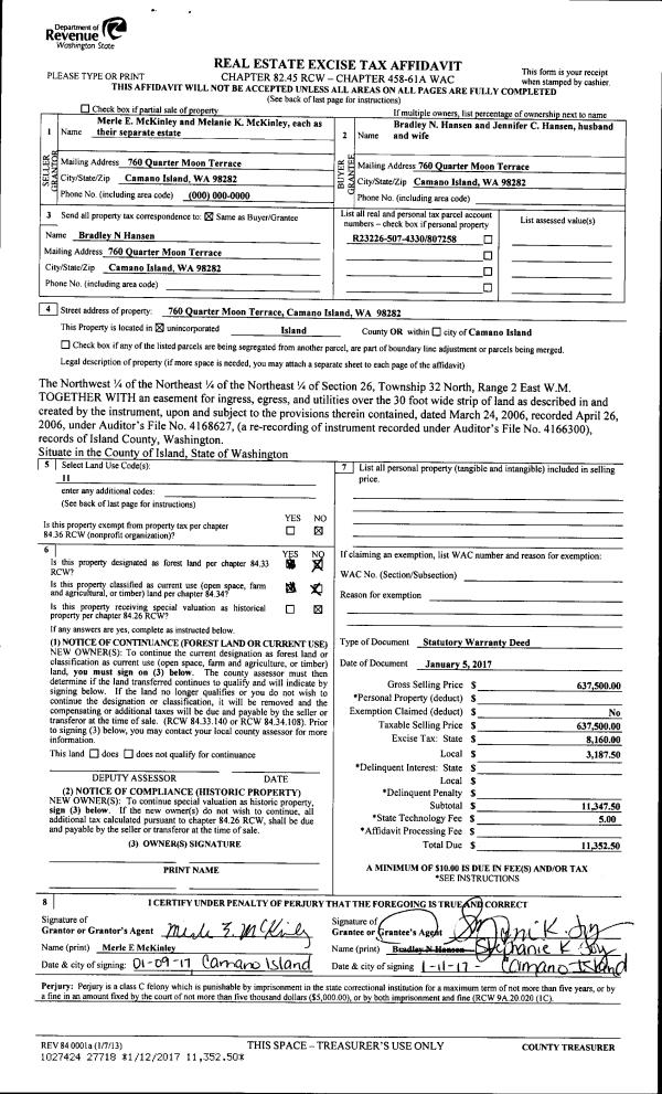 | Mailing Address: | 406 BON AIR DR COUPEVILLE, WA 98239 | % Ownership: | 100.0000000000% |